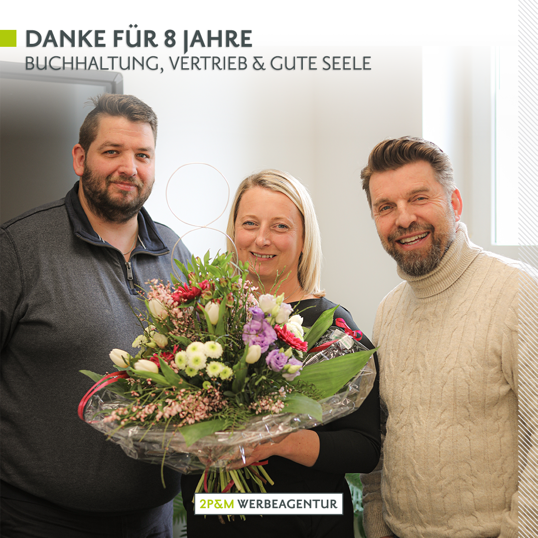 Nicht nur die Werbeagentur feiert im April sein 8-jähriges Bestehen, sondern auch unsere geschätzte Mitarbeiterin und Partnerin Anna Kallaene ist seit GmbH-Gründung ein unverzichtbares Mitglied unseres Teams – wir sagen DANKE und freuen uns auf viele weitere Jahre mit Dir!